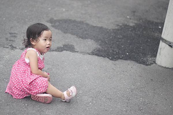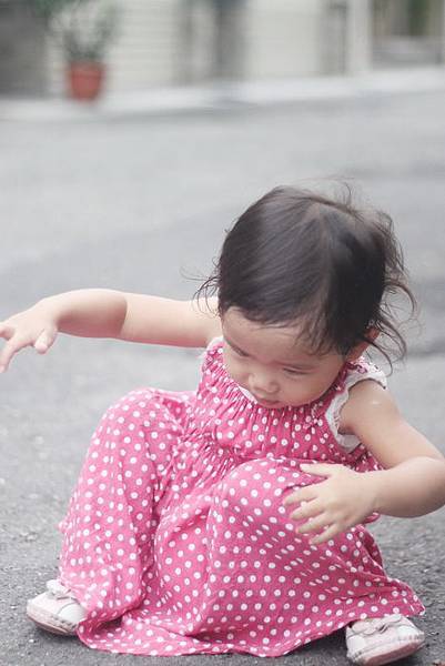 天真的芸又跑回去坐在地上試範一次跌倒的姿勢給媽咪看~噗.....